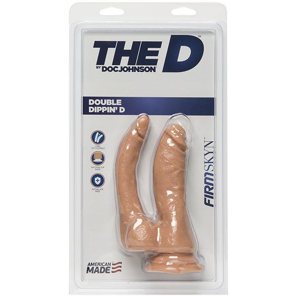 Doc Johnson The D - Double Dippin D - FIRMSKYN, двусторонний фаллоимитатор, который обязательно понравится. Эта уникальная игрушка разработана таким образом, чтобы доставлять максимальное удовольствие двумя разными концами. Большой конец имеет реалистичную форму и текстуру для невероятно реалистичного ощущения, а меньший конец имеет гладкую поверхность для более интенсивной стимуляции. Оба конца сделаны из материала FIRMSKYN, мягкого и гибкого, но достаточно прочного, чтобы обеспечить удовлетворительное давление.